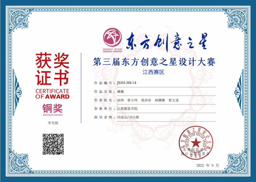东方创意之星设计大赛以工业和信息化部国际经济技术合作中心为指导单位举办的全国性赛事,在国内具有极高的影响力。此次获奖是人文学院产教融合项目《江西省文化创意产品项目》教学的重要成果,也是人文学院积极改革育人模式的重大体现。