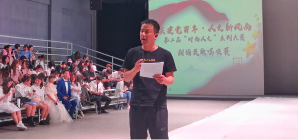 陈家华作赛前讲话,他指出,今年恰逢中国共产党建党一百周年,人文学院“2021新人文”中外双语系列比赛旨在为同学们提供良好的人文素质自我展示平台,让我们在比赛中用优美的诗句文章、悠扬的歌声为建党一百周年献礼。
