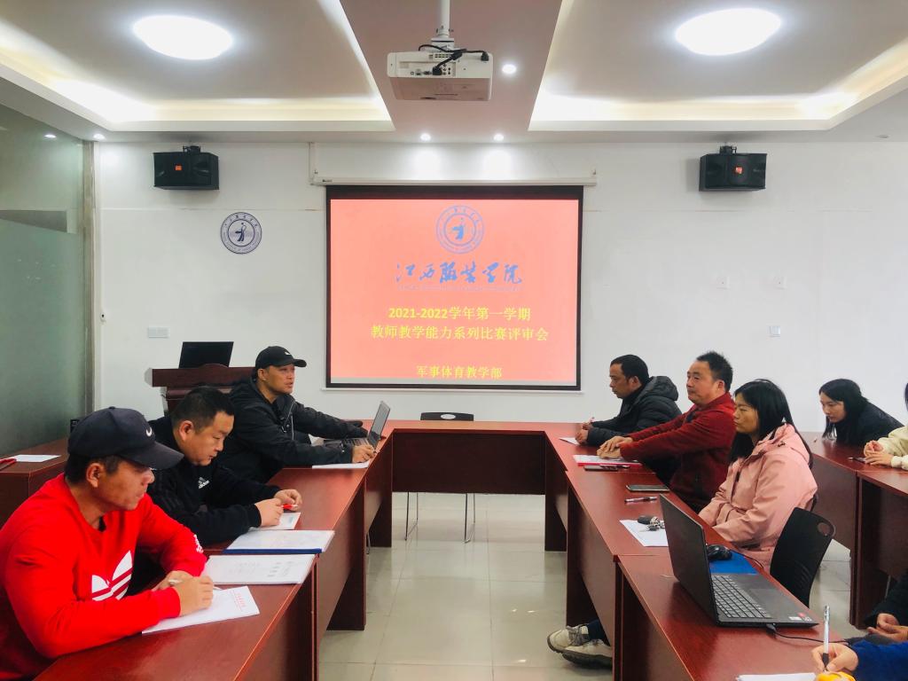 为认真贯彻落实《关于开展教师教学能力系列比赛活动的通知 》(江服教发[2021]152号)文件精神,进一步提高教师教学能力,扎实推进课程建设工作,2021年11月26日上午,军事体育教学部在清源6楼会议室组织召开教师教学能力系列比赛评审会,部门课程建设评议小组和参赛教师参加此次评审会,会议由部门副主任褚欢主持。