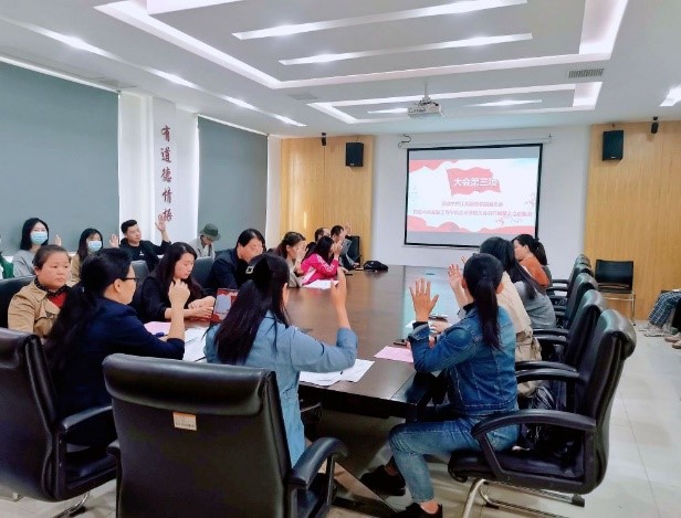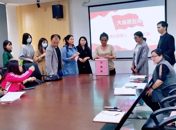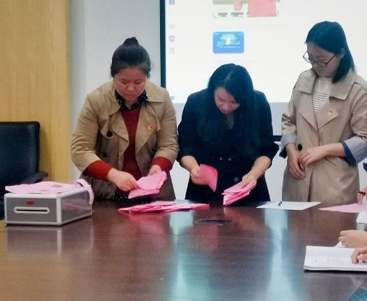 根据《中国共产党章程》《中国共产党基层组织选举工作条例》及上级党组织有关文件规定,大会采取全体举手表决方式审议通过了《服装工程学院总支部委员选举办法(草案)》、监票人、计票人以及九位总支部委员候选人名单。按照选举办法规定,党员充分发挥民主,积极行使民主权利,以无记名投票的方式进行差额选举。35位党员逐一将自己的选票郑重地投进计票箱,经过计票人、监票人认真统计后,蓝岚、陈娟芬、李晓龙、洪婷、花俊苹、章华霞、王鸿霖七位同志当选服装工程学院党总支新一届委员。