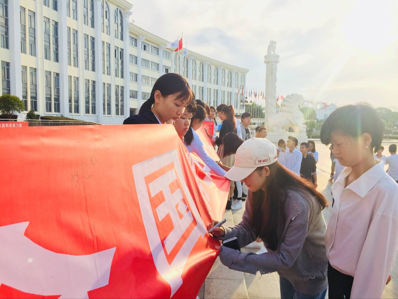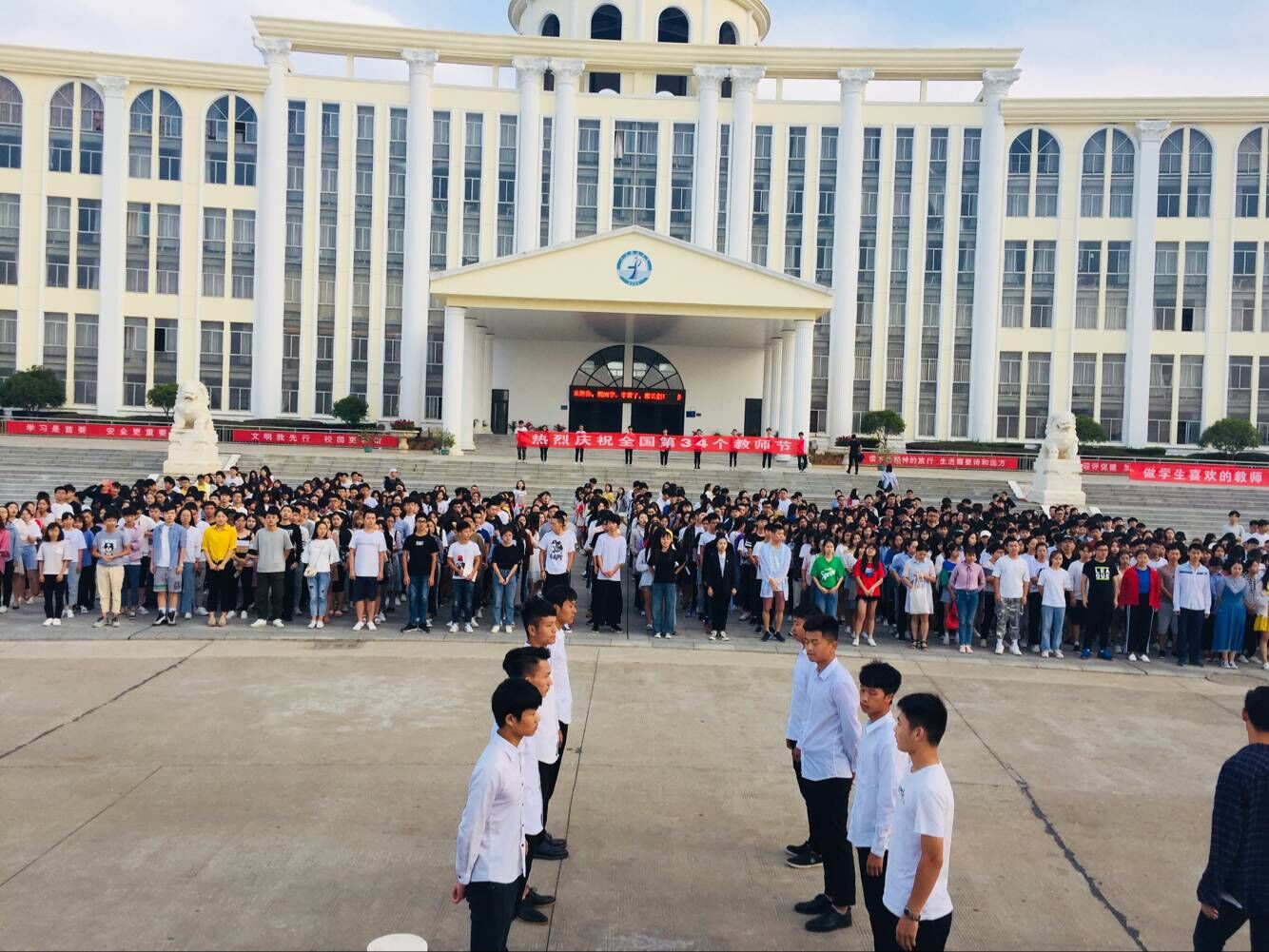 升旗仪式结束后,学院组织各班级学生进行“庆祝教师节34周年”签名活动。