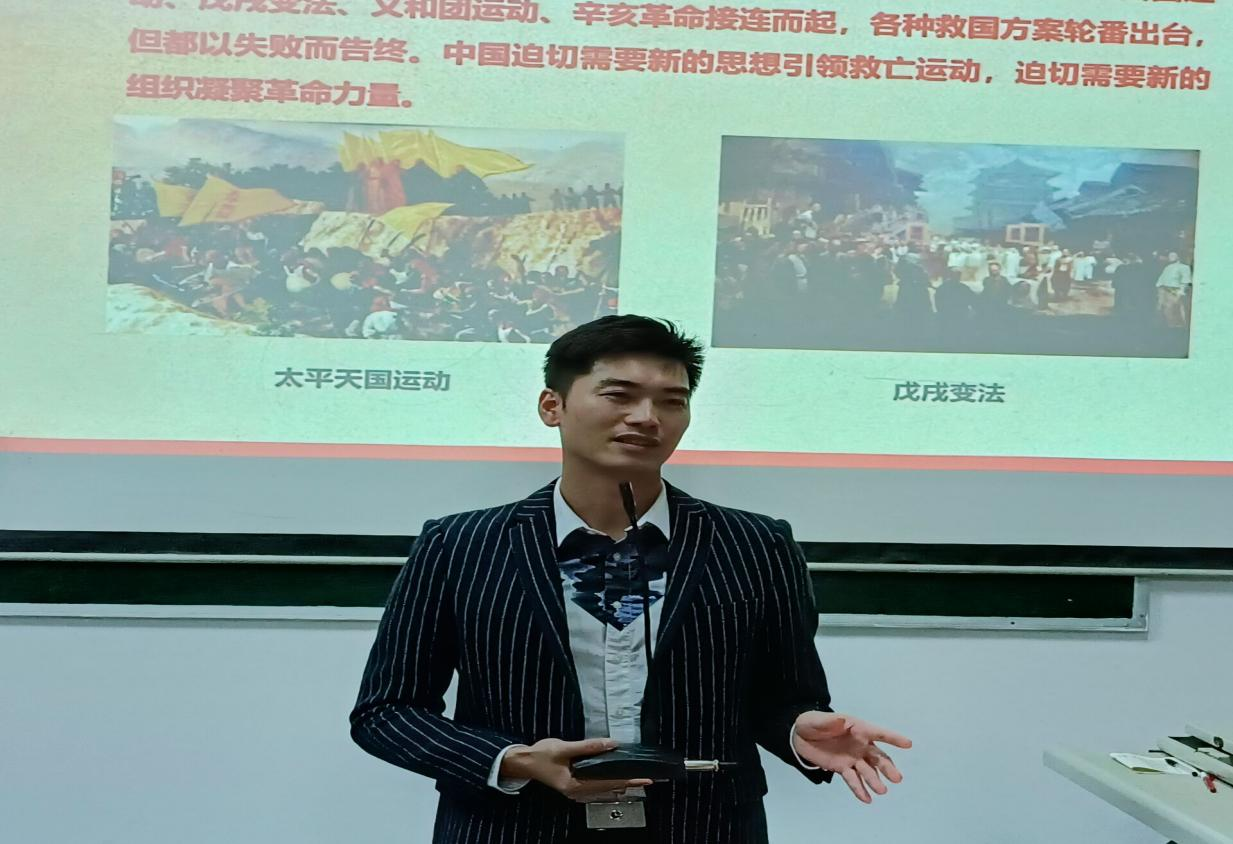 为深入开展党史学习教育活动,引导服装设计学院学子进一步学习了解党的光辉历史、伟大成就和宝贵经验。11月15日晚7:00时,服装设计学院在主教楼128教室开展了一堂生动的党史教育课,课程分为线上线下两个平台,课程由张龙龙老师主讲。张龙龙老师用辛丑条约签订现场和中美高层战略对话两张图片引发同学们的思考。他又举例孟晚舟事件,向同学们阐述站在百年新起点的中国共产党正带领中国人民以不可阻挡的步伐迈向伟大复兴。
