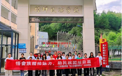 畲族乡民族学校是民族团结示范学校,该校坐落于江西省鹰潭市贵溪市樟坪畲族乡樟坪村内,群山环绕,生源稀缺。全校共有13名学生,全为畲族学生,涵盖一至九年级,绝大部分学生都是留守儿童,父母长期在外务工。畲族的雷佳瑶同学告诉实践队的队员,因为接触的外来人口不多,所以日常沟通的语言是畲语,讲普通话的次数很少。