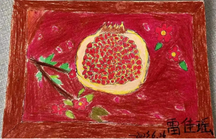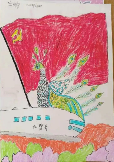 第二节课,实践队的成员与小朋友一起绘画心中的“民族团结”盛景,以表达自己对党和国家的热爱和感激。小朋友们都有自己独特的想法,雷佳瑶小朋友以中国红为基调,画了一颗石榴,很好地诠释了各民族像石榴籽一样紧紧抱在一起。兰有康同学画的畲族图腾凤凰和谐号象征着畲族在和谐号的推动下走出大山,走入中华民族的怀抱之中,畲族人民紧紧地与各族人民相互依偎,携手共筑中国梦。