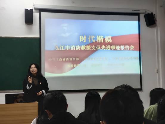 新闻中心讯:为深入学习宣传贯彻“时代楷模”九江市消防救援支队先进事迹报告会精神,营造以先进典型为榜样,学习先进、争当先进的浓厚氛围。10月21日晚7时,人文学院120余名师生在主教学楼609多媒体教室集中观看了“时代楷模”九江市消防救援支队先进事迹报告会的回播。
