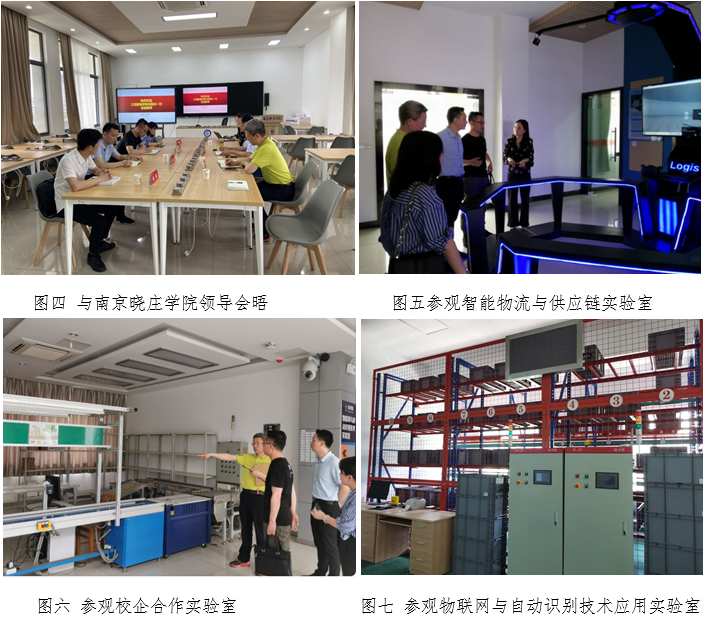 30日,商学院调研组一行赴南京晓庄学院、络捷斯特科技有限公司交流调研。期间,在南京晓庄学院供应链创新建设实验室召开了座谈交流会,南京晓庄学院商学院副院长谢吉晨,物流管理教研室主任许国银,北京络捷斯特科技股份有限公司南京办事处负责人何萍经理等领导出席了座谈交流会。会上,谢吉晨副院长对商学院考察组一行表示欢迎,并介绍了南京晓庄学院商学院开展实验室建设方面所做的系列工作。许国银主任就学校物流专业发展及学校校企合作模式现状等进行了介绍,随后,双方就如何推动校企合作模式、产业学院建设及优化人才培养方案设计进行了经验分享。期间,商学院考察组就目前在专业建设中遇到的问题和疑惑进行了询问,双方进行交流。谢吉晨副院长对于江服严谨的办学态度及扎实的实践教学工作表示赞赏。会后,考察组一行参观了南京晓庄学院与北京络捷斯特科技股分公司合作创办的开放式供应链创新实验中心、智慧物流与供应链管理综合实验室等,调研了实验室设备的配置、软件的使用等情况。