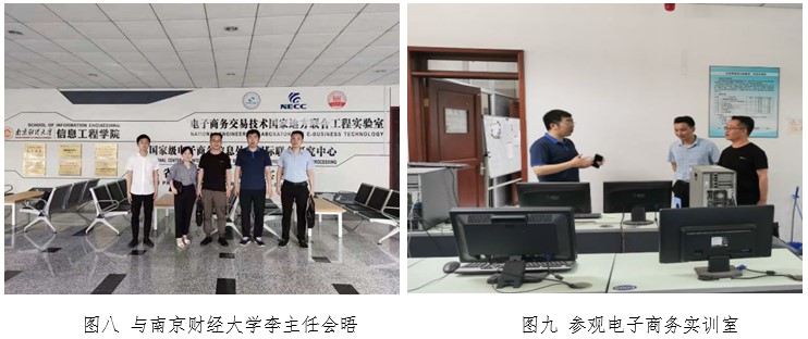 31日,商学院调研组赴南京财经大学交流学习,在南京财经大学电子商务实验室召开,南京财经大学电子商务系主任李冠艺出席了座谈交流会。会议开始,李冠艺主任对商学院考察组表示欢迎,并介绍了南京财经大学电子商务专业建设方面所做的系列工作及所取得的成就,介绍了南京财经大学跨境电商实验室的定位、功能布局以及所承担的实践教学任务。双方就如何推动校企合作、产业学院建设及优化人才培养方案设计以及在此过程中遇到的问题和疑惑进行了交流与探讨。李冠艺主任表示南财电商专业人才培养遵循如下方案:大一鼓励学生考取相应的职业文凭(如四六级英语、计算机等级证书);大二鼓励学生参与各类竞赛、发表论文;课题研究中对大三学生推行师生互选,即有课题项目的老师可以招募学生,学生根据自身研究方向选定研究项目,或大一学生加入大二、大三学长主持的课题中,参与课题建设;大四学生鼓励考研,但不强烈要求,自愿选择。在专业实习方面,学生自主选择实习单位,完成实习报告。