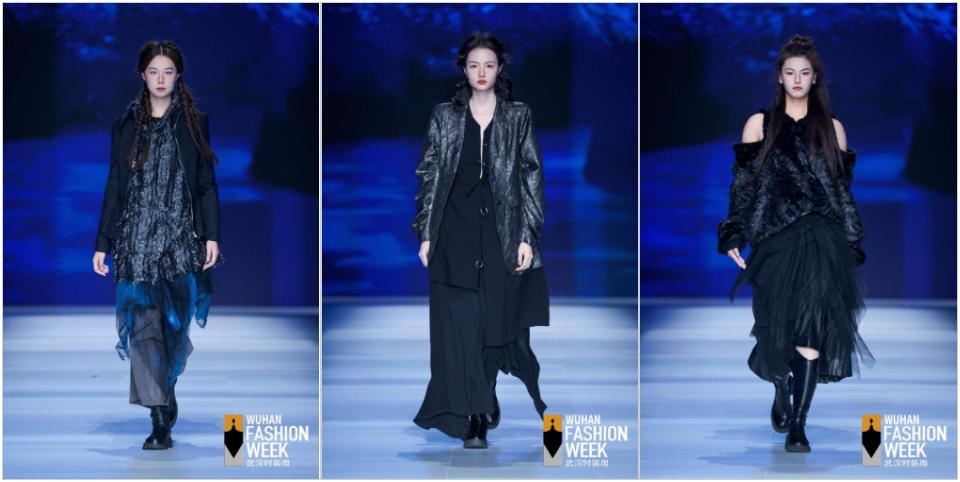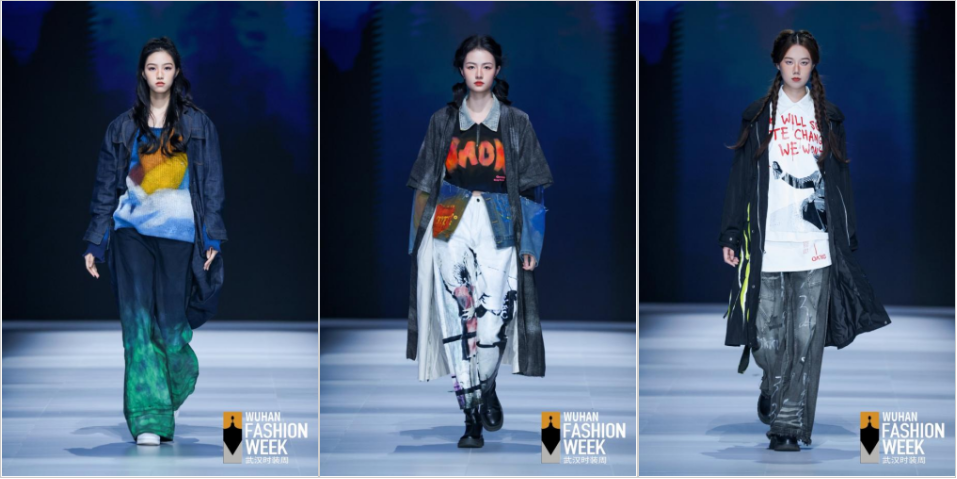 本次品牌秀以“卧龙谷”为主题,灵感源自对自我信念的挑战与敢于打破常规的勇气,同时融合了自然的多样性与青年个体的创造力。发布会分为四大系列,分别从广袤山谷的神秘性、自然力量的多样性、个体探索的叛逆性以及共存的平衡感出发,色彩以自然界中的黛青灰为主色基调,加以绿色,中黄、橙红、克莱因蓝等点缀色,大胆的色彩如同唤醒复生的力量。采用解构剪裁、不对称线条、材质重组及拼接撞色等设计手法,同时融入水洗做旧、废土风元素,牛仔与皮草的古今碰撞、镂空与重叠的材质肌理以及大胆的渐变色彩交错,让作品多了复古时髦的气息,简约廓形、灵动配色,传递出随性又不失个性的态度,每一件设计都呈现出从静谧到张扬、从多元到和谐的节奏感,将设计师对“自然觉醒与自我表达”的深刻理解融入细节之中,唤醒观众对个性与环境共存的深层思考。