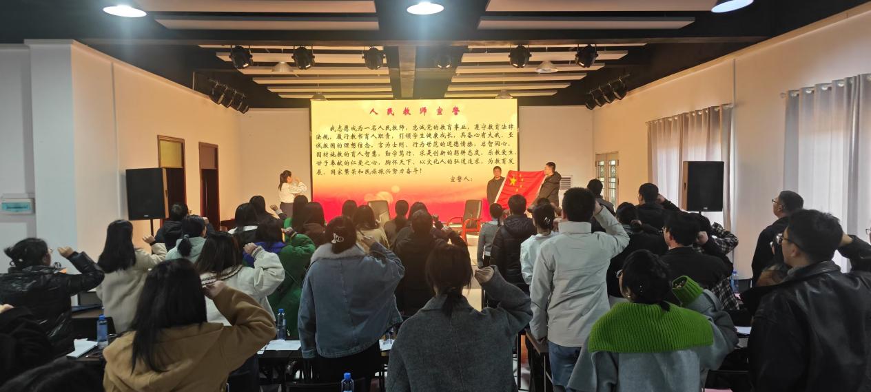 访谈课程结束后,在领誓人的带领下,全体教师面向国旗进行了庄严的宣誓。表达了全体教师对教育事业的无限忠诚与热爱,以及他们为学生的成长和学校的发展愿意奉献一切的决心和承诺。