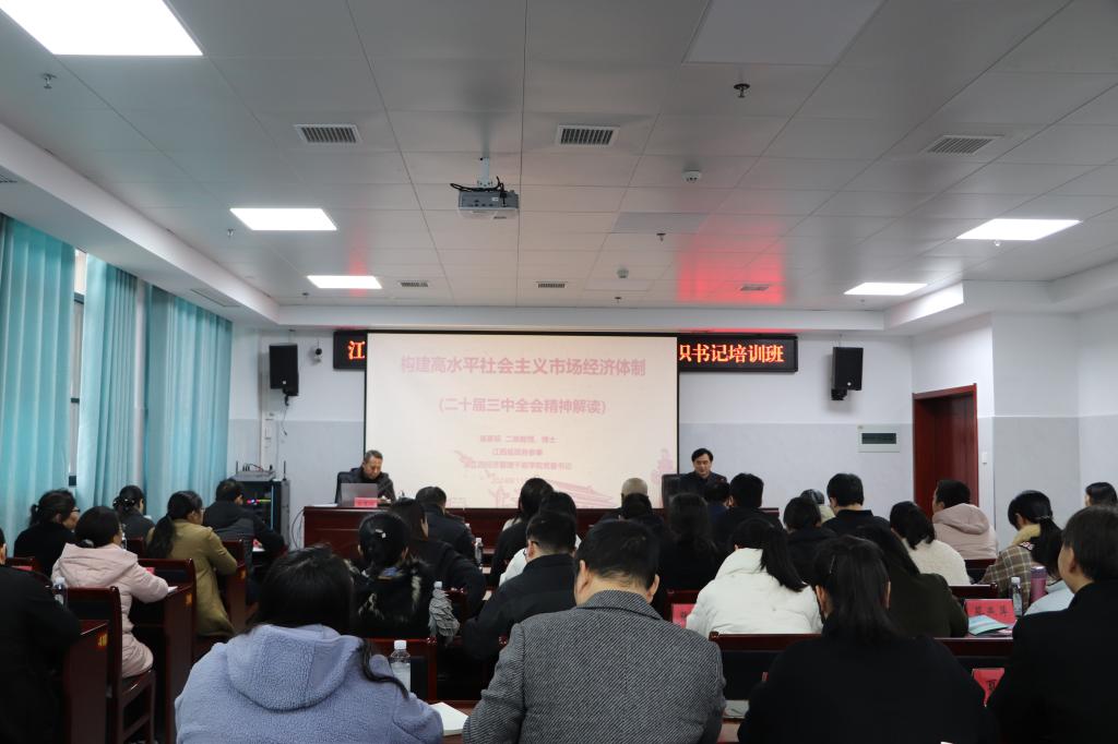 开班仪式结束后,全体学员一同学习了教育部第一批本科评估进校评估专家、江西省教育评估院杜桢教授的《新时代第二次全国教育大会主要精神和习近平总书记教育重要论述解读——兼论在江西高校的应用》主题讲座。7日下午,培训班成员来到靖安县委党校,在教学楼聆听了省政府参事秦夏明同志作《关于党的二十届三中全会精神解读》专题报告,晚上分党外代表人士、党组织书记成员两个小组分别进行交流研讨。