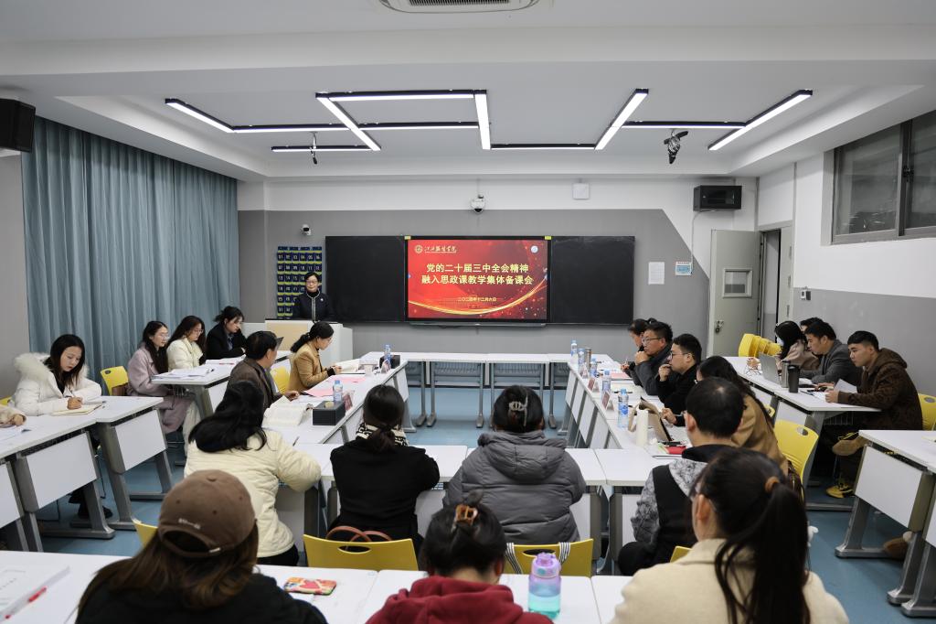 当日,林井萍书记、薛家宝校长还参加了学院组织的党的二十届三中全会精神融入思政课程教学集体备课会。