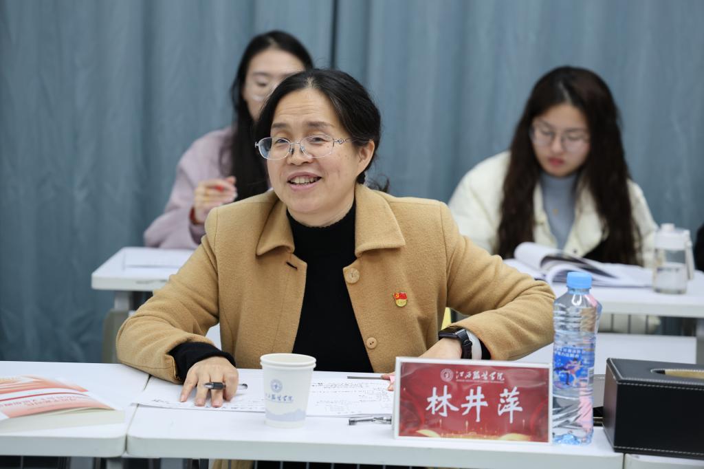 林井萍指出,思政课作为落实立德树人根本任务的关键课程,思政课教师肩负着铸魂育人的崇高使命。她强调,思政课教师要以“六要”素养严格要求自己,强化自身理论学习,丰富知识储备,夯实教学科研基本功。思政教学紧密贴近学生实际,将学思用贯通、知信行统一的理念贯穿始终,要紧密结合学校专业性、行业性特点与学生成长成才需求,深化“大思政”建设工程,积极构建“大思政课”育人格局,着力打造具有学校特色的思政课程品牌。