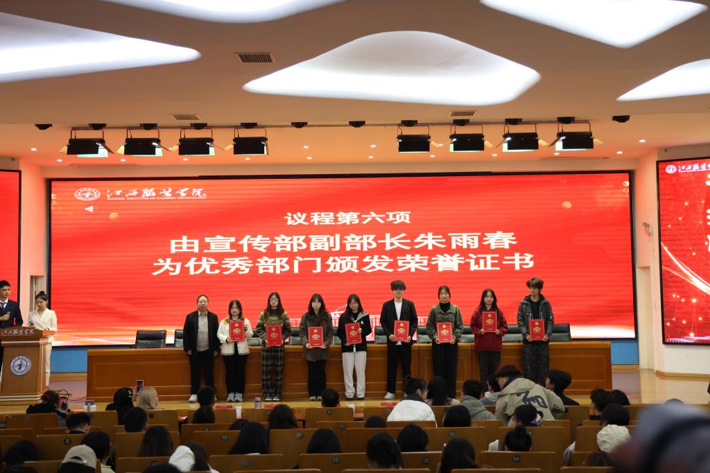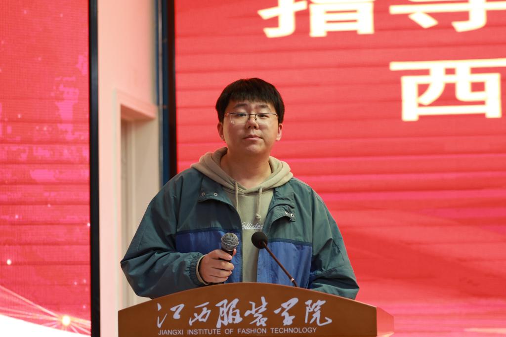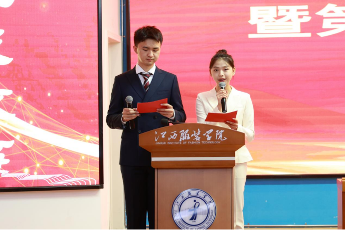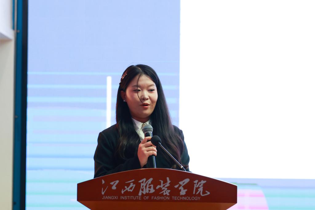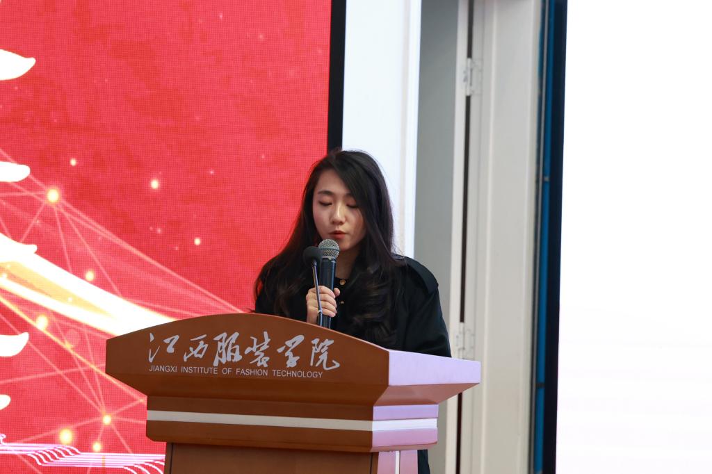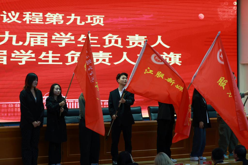 传承仪式上,由第十八届服装报社学生社长、江服广播电视台台长、融媒体中心学生主任、新媒体联盟学生主席分别与新任职的第十九届主要学生负责人交接团旗。