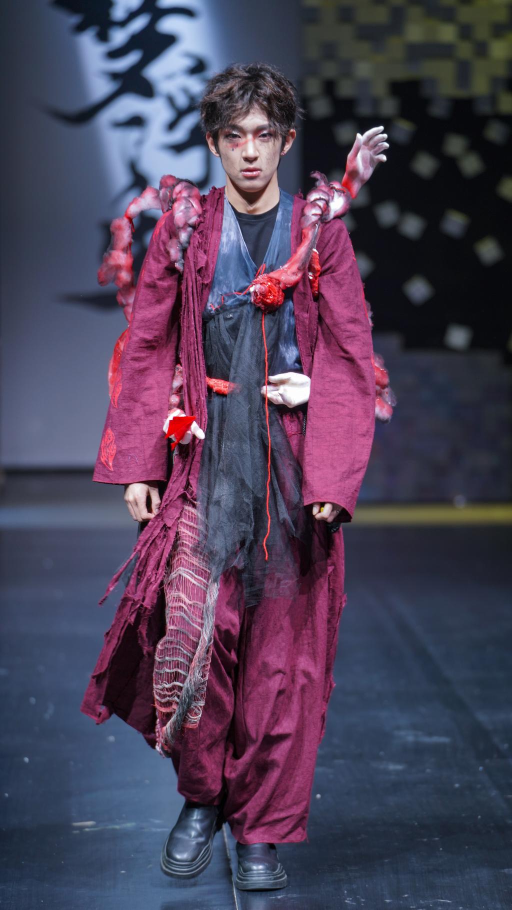 此次动态走秀采用了室内造景舞美设计,每个篇章的置景均由2022级戏剧影视美术设计专业同学倾心打造,每一个篇章都有独特的设计风格。