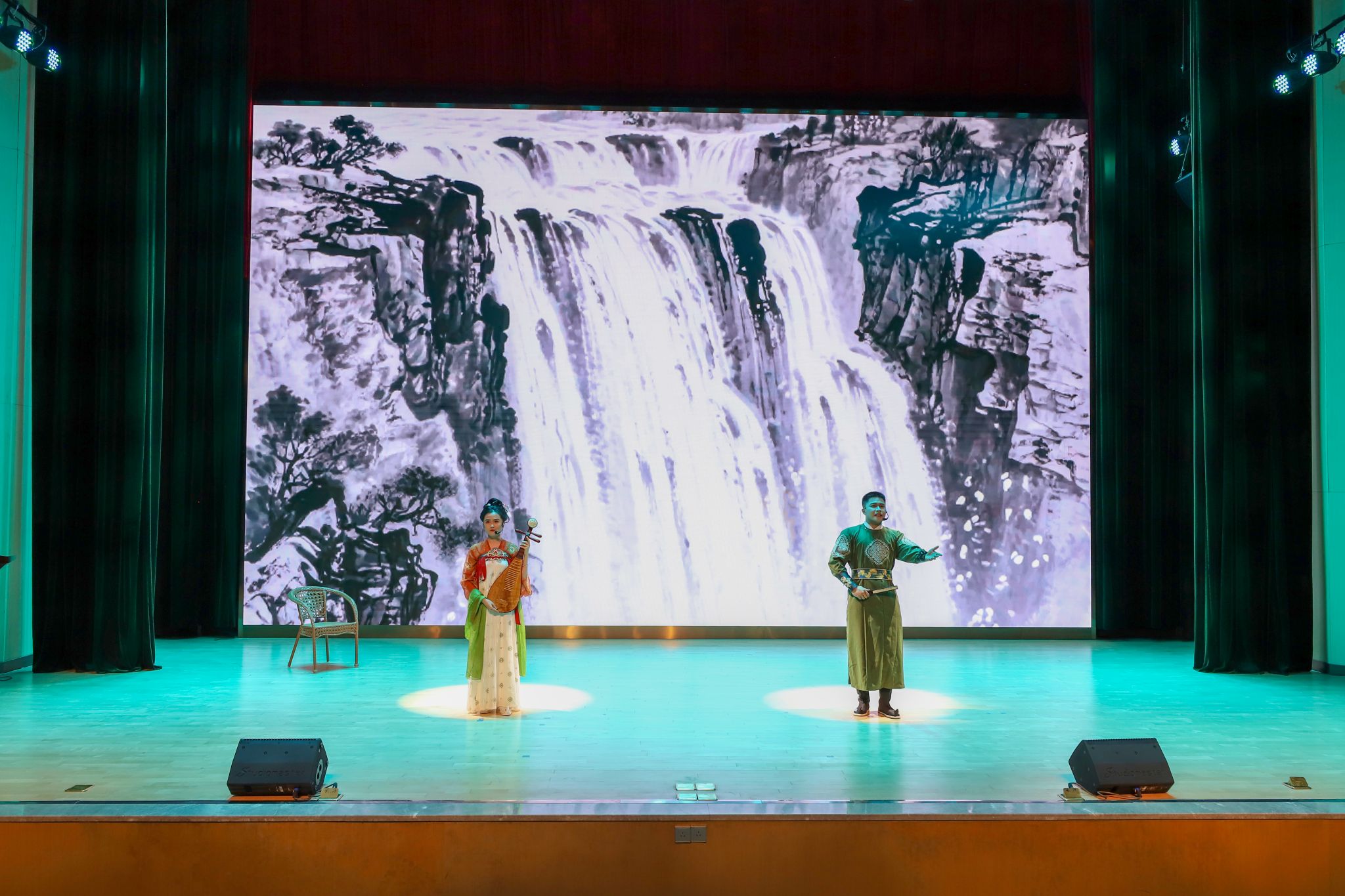 此次比赛邀请了来自江西省内知名的行业专家、院校专家和语言文字工作专家共同构成本次大赛的专家评审团,有江西广播电视台播音指导杨帆老师;南昌大学教授、播音指导蔡静老师;江西师范大学播音主持专业负责人王霖老师;江西科技师范大学副教授、国家级普通话测试员曾伟老师等。该赛事自3月份启动以来,分为专业组海选赛和校级决赛两个阶段进行,经过海选的选拔和老师们的精心编排,共有11组作品进入校级决赛。比赛中,选手们以真挚的情感、饱满的声韵和极具张力的舞台表现惊艳全场,他们用声音绘山河、以诵读诉衷肠,让千年文脉在舞台上焕发出鲜活的感染力与生命力。