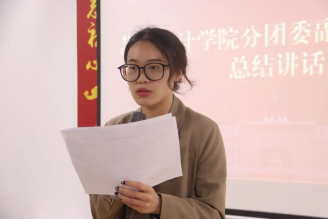 活动的最后由胡俊雅老师进行总结发言:一代人有一代人的使命,一代人有一代人的担当。建团百年,风雨兼程,时代的接力棒已然传递到你们的手中。作为新青年的你们,面对新时代的机遇与挑战,必要不忘初心,不负韶华,承时代之使命,用奋斗谱写青春之华章!并寄语在场青年学子,要敢想敢为,敢于突破,保持初生牛犊不怕虎的劲头和明知山有虎偏向虎山行的决心,勇于探索、突破常规,以创新思维打开新局面、开创新天地;要善作善成,勇于担当,将青春梦想汇入新时代宏伟的中国梦,将个人奋斗的“小目标”融入党和国家事业发展的“大蓝图”,在追求中华民族伟大复兴的道路上脚踏实地、持之以恒地做好每一件实事、小事,练就担当作为的硬脊梁、铁肩膀。