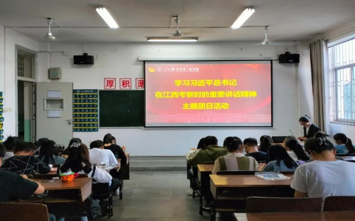 为传达学习习近平总书记在江西考察时的重要讲话精神,加强我院学生对党史、团史知识的认识,丰富同学们课余生活,缓解学习压力,增进学院与同学们之间互相交流与沟通,提高大学生的思想素质,锻炼意志品德,提升适应能力,商学院于10月31日下午4:30在主教楼129举行“传达学习习近平总书记在江西考察时的重要讲话精神”为主题的团日活动。