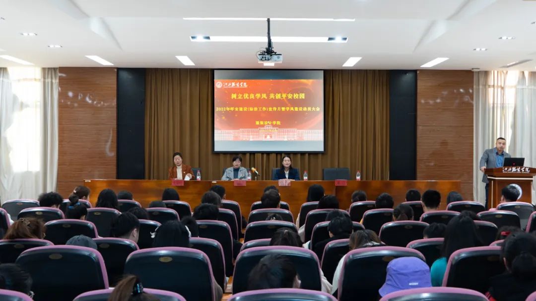 3月9日晚17时30分,服装设计学院于行政楼一楼报告厅召开“树立优良学风,共创平安校园”2022年平安建设(综治工作)宣传月暨学风建设动员大会,学院党总支书记蓝岚,教学副院长黄伟,副书记周洪英,全体辅导员及各班学生代表出席会议,会议由学工办主任张敬玲主持。