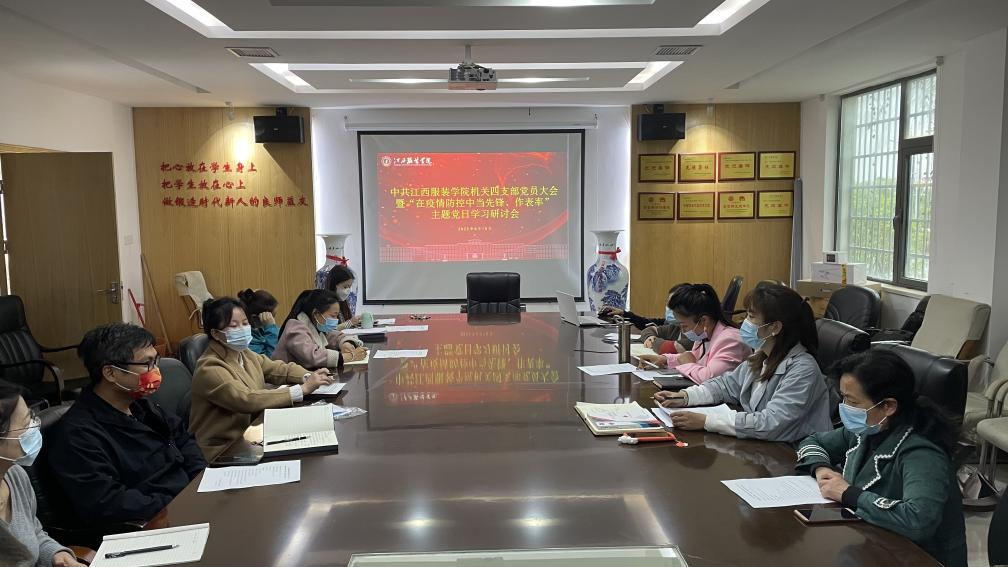 2022年4月15日下午3时,机关四支部党员大会暨“在疫情防控中当先锋、作表率”主题党日学习研讨会在学工处会议室召开,机关四支部全体党员参加会议,会议由支部书记孟安然同志主持。