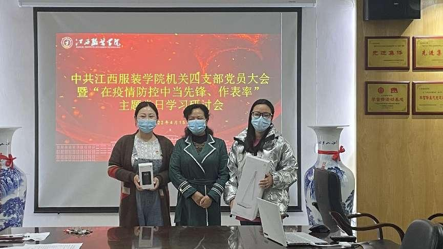 支部书记孟安然对本月学习强国排名前三的“学习标兵”进行表彰,余晓萍同志为学习强国“学习标兵”发放奖品。