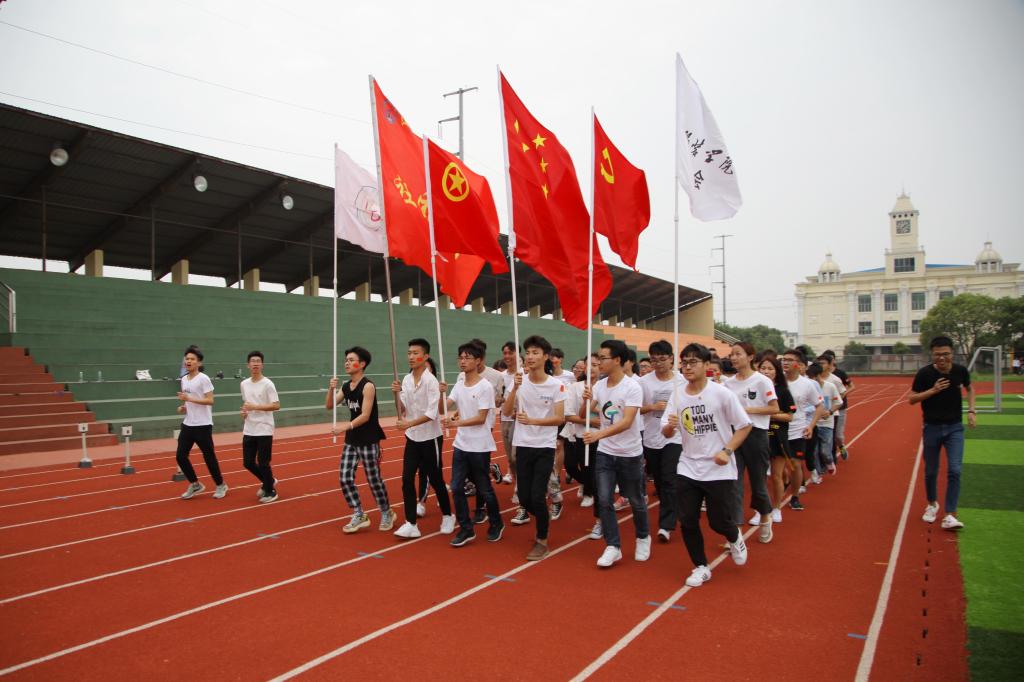 旗手们高举旗帜,带领着同学们奔跑在校园的各个角落,他们昂首阔步,充满激情,展现出了青年的朝气与蓬勃。“五四精神 薪火相传 江服学子 永葆先进”这喊出了江服学子的豪迈,展现了青年的精气神。他们的激情满布着整个校园,五四的精神在每一位学生身上体现。