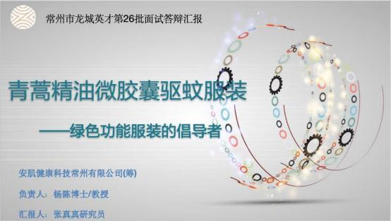在本次选拔赛的答辩会上,杨陈详细汇报了其团队研发的复方植物精油微胶囊驱蚊服装项目。杨陈首先介绍了创业团队的组成情况、团队成员的学历、资历及工作经历,特别强调了团队的合理性和稳定性,以及团队在常州创业的决心。