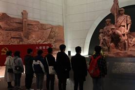 上午7点30,同学们在学生党支部组织委员吴圣琦老师的带领下乘坐大巴,从学校出发直赴位于南昌市八一大道的“江西革命烈士纪念堂”。大巴车在革命烈士纪念堂门前停下,一行人有序进入纪念馆,进行了深刻的参观学习。入党积极分子们一起参观,一起学习,相互交流,共同感动。参观结束之后,大家一起拍照留念,让人不禁想起长征过程中无数汇聚在一起的革命先烈前辈。