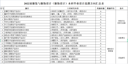 图3 服装设计学院2022届本科毕业设计选题方向汇总表