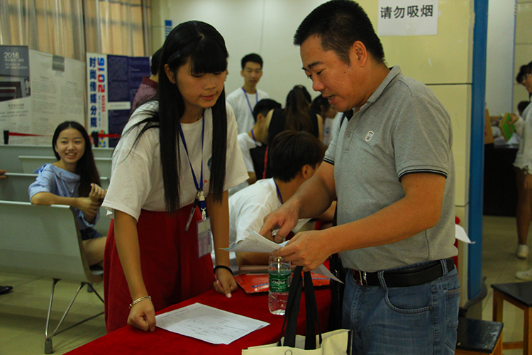 艺术院15视传本科2班王奇玉是负责报到工作的接待员,她说接待工作是从早到晚都在进行,很充实也很锻炼自己,“不同的新生,不同的面孔,看到他们仿佛看到去年的自己,工作起来也感觉变得更加轻松愉悦了。”
