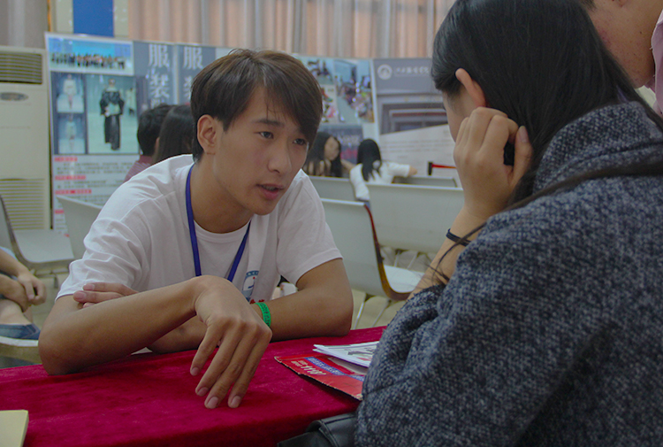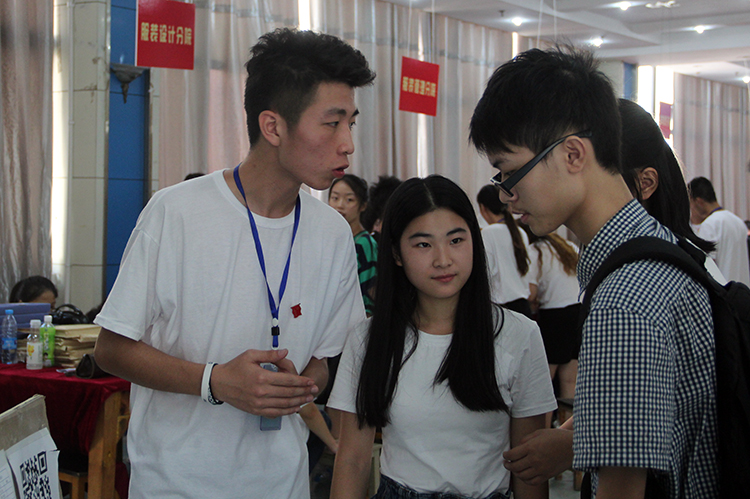 “不管什么事,我都想做的最好,努力呈现自己还有学校最好的一面。”设计院15时装1班的刘鹏博说完就在为刚来报到的新生给予各个专业的讲解,看到新生及家长都解开困惑一脸放心的表情,刘鹏博笑了。