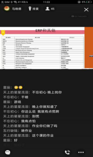 之前不知道什么是ERP,对这门课程非常陌生。上完今天的课后,对ERP有了深刻的理解,课堂气氛很好,老师问的问题我们也能充分思考,即使回答的不完全正确,但对问题的理解正是一次由浅入深的过程,通过重点内容讲解和课堂互动,对网络课程的感觉真不错。老师课前真是花了很多时间,做了充分的准备。