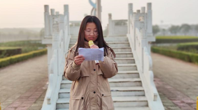 学生代表柯雨晴同学在国旗下发言,她在发言中提到,加强校园精神文明建设,首先应从我们自己做起,青年大学生要继续弘扬艰苦奋斗精神,要有远大理想,要不忘初心,牢记使命,不忘先辈们的奉献,要心怀感恩之心。