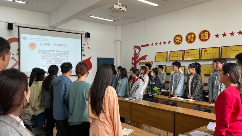 会议伊始,全体起立合唱《光荣啊!中国共青团》。