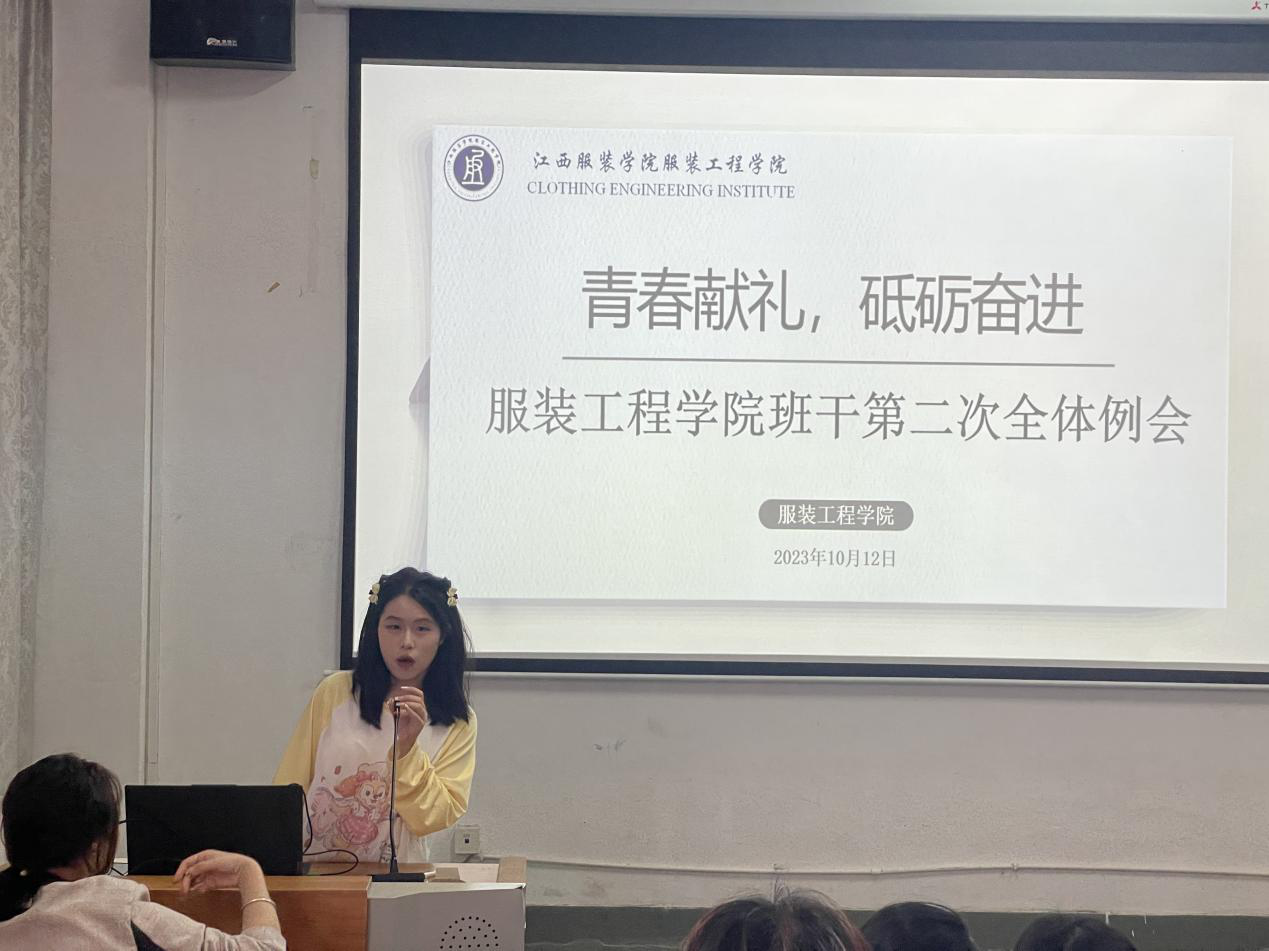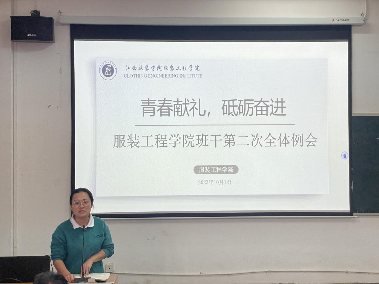 (服装工程学院讯 刘桐羽撰稿)为有效增强服装工程学院班干部的工作活力,加强辅导员与班干部的沟通交流,提升服装工程学院学生工作质量,加强班级的建设工作。10月12日中午12:20,服装工程学院于主教楼-110教室召开本学期第二次班干例会,学工办副主任洪婷,班委联合会指导老师邓文琴,辅导员卢永红、江青燕、石福俊、王舒,班委联合会成员以及各班级班长、团支部书记参加了此次会议,会议由学院班委联合会副会长陈欣雨主持。