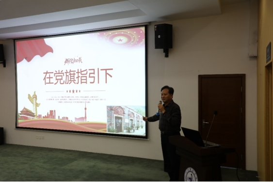 陈东生副校长为师生党员上了一堂主题为《在党旗的指引下》思政课。课上陈东生围绕建党一百周年学党史、悟思想发表了自己的观点。他指出学党史,悟思想,办实事,不能脱离自身实际,身为学生,就应该奋发有为、刻苦学习,在学习中学党史,在学习中悟思想,在学习上办实事。