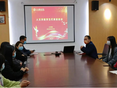 【人文学院讯 杨鑫钰等撰稿】为更深入了解学生学习和生活情况,倾听学生对学校发展的意见和建议,尤其是疫情突发以来,学校全面转入线上教学,为及时了解学生在学习和生活方面存在的困惑和问题,提升学院的教学管理水平。人文学院于2022年4月13日晚19点30分在清源2栋204会议室召开了学生代表座谈会。人文学院党总支副书记马忠秋、院长助理陈家华,院分团委书记王艳艳及各班级学生代表参加了座谈会。