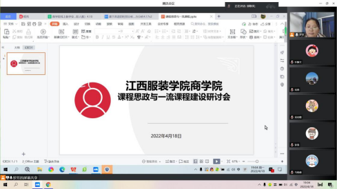 【商学院讯】近日,江西高校课程资源共享中心主办召开了“课程思政与一流课程建设”专家线上指导会议。为了配合学校部署,进一步推进教学建设和改革,推进学校课程思政和一流课程建设,4月18日晚,商学院召开了“课程思政与一流课程建设”线上专题研讨会。会议由学院副院长罗芳主持召开,院办主任、教研室主任、专业负责人、部分专任老师和教学秘书到会参加。