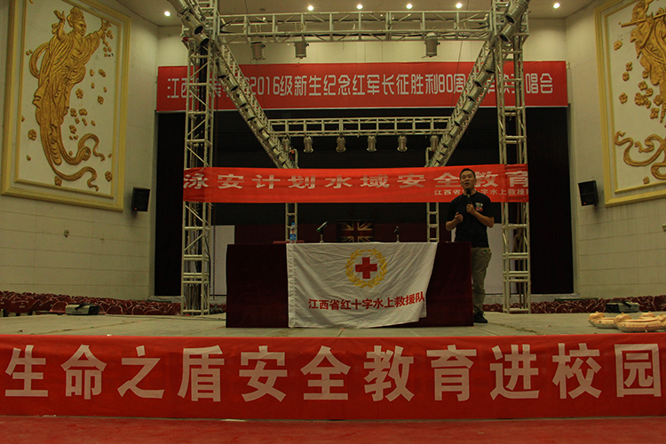 服装报讯(记者/洪丽奇 范心利 摄影/余婷)8月29日晚,我校在霓裳宫举行了“泳安计划水域安全教育”专题知识讲座。江西省红十字水上救援队、南昌市救援协会会长单元平担任主讲,讲座由学工办处长张建荣主持,2016级军训新生聆听了此次讲座。