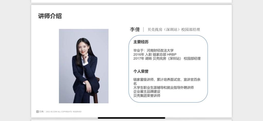 “听说者想说,说听者想听”,沟通是当今社会不可缺少的技能之一。为增强21级新生日常生活中的沟通技巧,提升自身沟通魅力,商学院于12月16日晚在主教楼各新生班级通过腾讯会议开展“沟通技巧:事半功倍的秘诀”职业规划培训,本次课程由校企合作的贝壳找房(深圳站)校园部经理李倩担任主讲人。