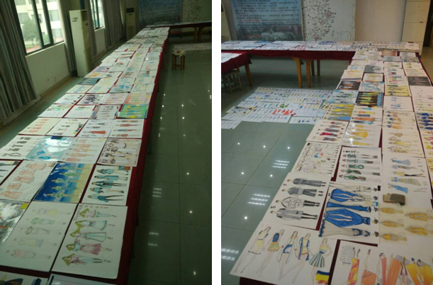 今年5月初,就业指导中心开始在全校范围内启动了“金苑”女装款式设计大赛,通过校园海报、横幅、电子屏和学校网站等多途径广泛宣传本次比赛,共收到了各年级的368份作品,经过企业评选出30份作品参加总决赛。总决赛中选手结合PPT演示文稿,讲解所设计的款式图寓意和灵感来源。