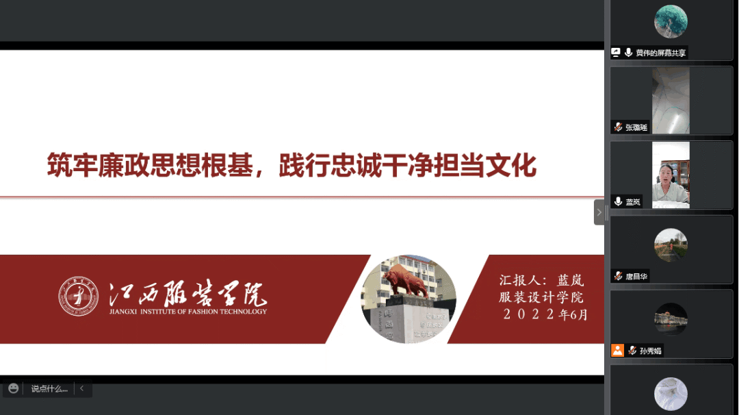 为进一步加强学院廉政文化建设,推进廉洁教育,营造风清气正的政治生态和良好的育人环境,2022年6月2日,服装设计学院于腾讯会议平台开展端午节前廉政警示教育。