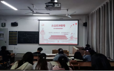 清风扬正气,廉洁秉初心。为进一步引导入党积极分子牢固树立正确的世界观、人生观和权力观,增强入党积极分子的法纪意识和廉洁自律意识。2023年4月9日晚7时,商学院组织部分入党积极分子在主教楼127开展“忠诚履职担当作为、走好新的赶考之路——观看电视专题片《永远吹冲锋号》”专题学习会。此次学习会由理论学习小组负责人余湘鸿主持。