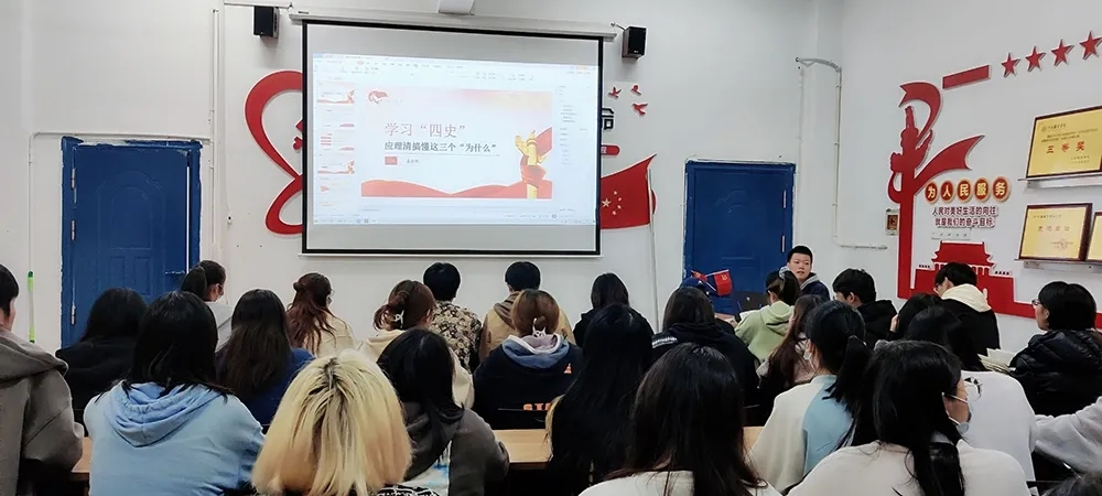 他指出,大家学习“四史”,并不是简单的回顾历史事件,而是把党的奋斗、新中国的发展、改革开放的辉煌成就、中国特色社会主义的伟大贡献放到中华民族5000年文明发展史、中国人民近代以来180年斗争史之中,放到中华民族伟大复兴的整个征程上。同学们要将四史与古今中外的历史做对比分析并加以考察,才能理解其更为深层的历史意蕴,才能真正感悟中国共产党为什么“能”,马克思主义为什么“行”,中国特色社会主义为什么“好”。