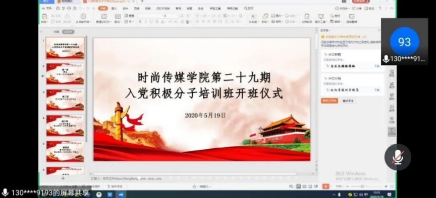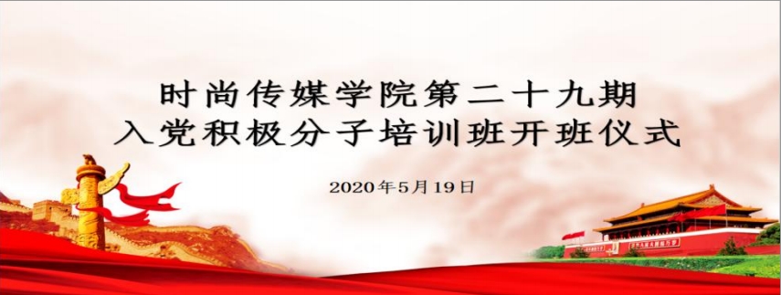 时尚传媒学院讯:为深入学习贯彻落实习近平新时代中国特色社会主义思想和党的十九大精神,落实新时代党的建设的总要求,进一步加强我院党员队伍建设,提高入党积极分子培训质量,保证党员发展质量。在全国上下对于新冠疫情外防输入,内防反弹的特殊时期,根据《党员发展细则》的规定和校党委工作安排,经研究决定,时尚传媒学院第29期入党积极分子培训班于5月19日下午2点,在网络平台开展开班仪式,党总支副书记黄鑫、学生支部书记樊雅薇、组织委员刘检莲、宣传委员成为家出席开班仪式。