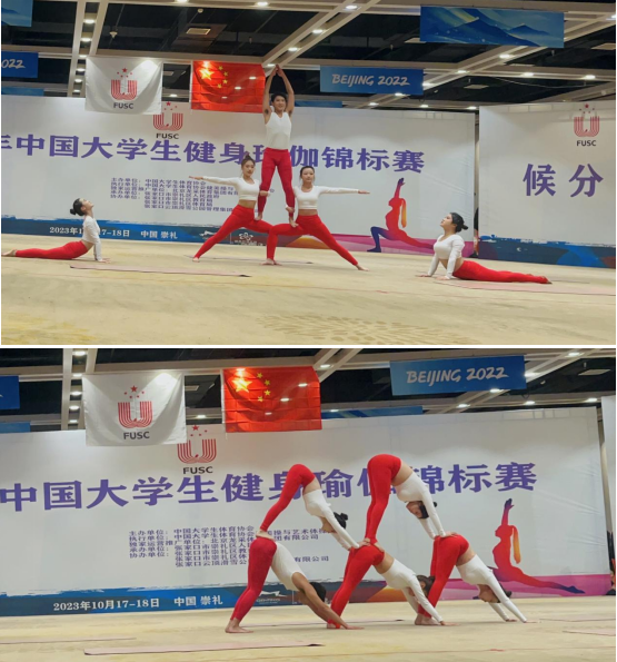 【军体部讯】10月18日,2023年中国大学生健身瑜伽锦标赛在河北省张家口云顶滑雪公园举行。我校瑜伽代表队在主教练徐红的带领下,凭借精湛的技艺,在此次比赛中荣获本科组一级混双第一名和二级小集体第三名的优异成绩。瑜伽代表队运动健儿们拼搏进取,敢于争先,为学校赢得荣誉。