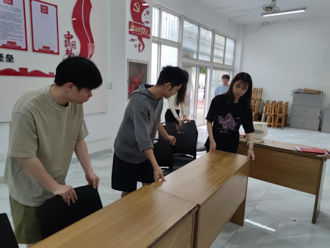 劳动创造幸福,奋斗书写华章。毕业生们手拿清扫工具团结合作,相互配合,用扫帚清扫教室地上的灰尘,共同协作,整理活动室书籍,将书籍整理归位。整理室内桌椅,归置整齐,认真劳动,不放过任何一个角落。使得活动室焕然一新,为美丽的校园增添了一份光彩!