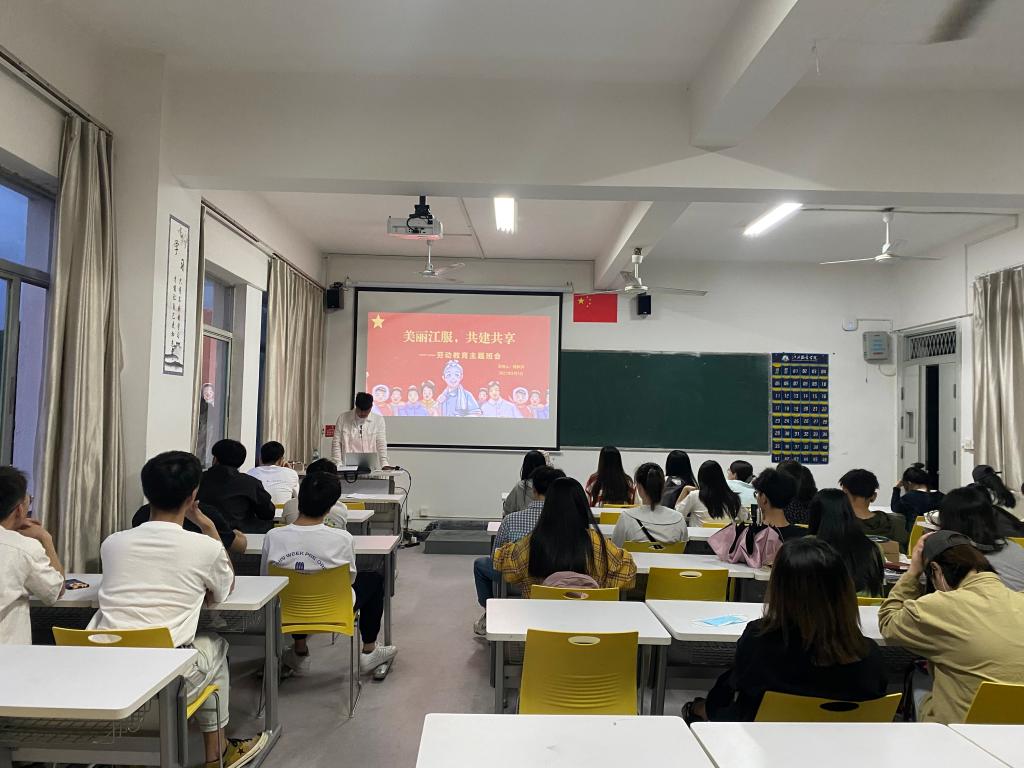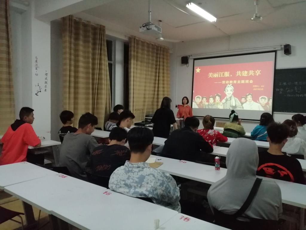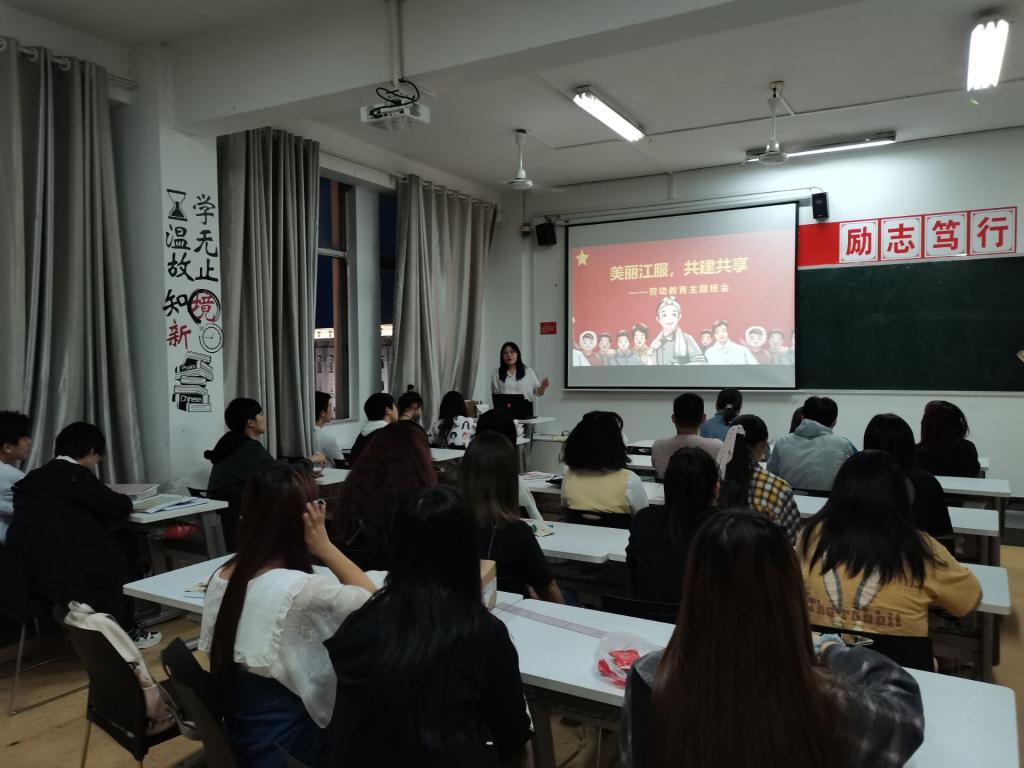 为促进学生树立正确的劳动意识,有效增进学生团体间的凝聚力,推动营造奋进团结、谐和友爱的校园氛围。5月6日晚,服装工程学院各班级于主教楼召开以“美丽江服,共建共享”为主题的班会。主题班会由各班级辅导员主持。