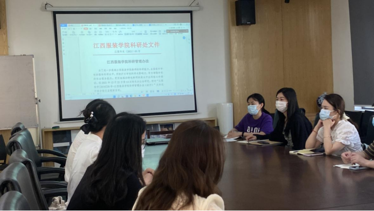 此外,时尚传媒学院副院长李有为还对新任教师的科研情况做了进一步的了解和指示,他引经据典,以八大山人、江右商帮、弋阳腔、王阳明、红色文化等为例,诠释了赣鄱文化的多元性和深厚性。强调研究课题应将科研方向和江西地域文化进行融合,同时要符合时代旋律和政治导向。同时,各位新任教师也向依次介绍了过往的科研成果并规划了将来的科研方向,副院长李有为表示要脚踏实地的进行课题申报,力争做出强内涵、上层次、入一流的科研成果。