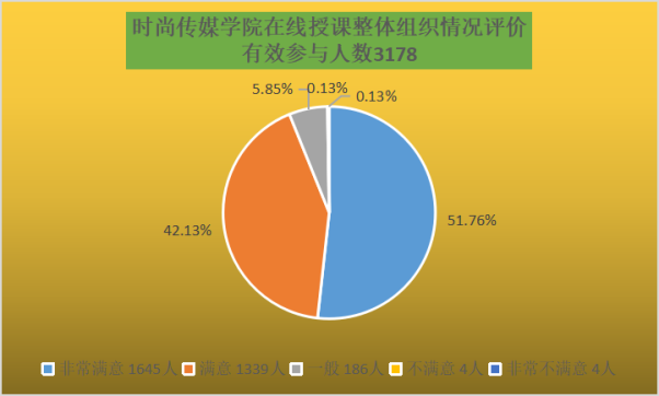 路漫漫其修远兮,吾将上下而求索。以上数据显示,学生对刚启动的线上教学改革的认可情况还不错,时尚传媒教师还需继续努力,制作或应用更优的线上课程资源,做好线上教学的有机对接并提供更好的导学、助学和督学工作,国难当头,教师虽不能去往一线救死扶伤,却可以在自己平凡的岗位上与祖国共克时艰,同气连枝,共盼春来。