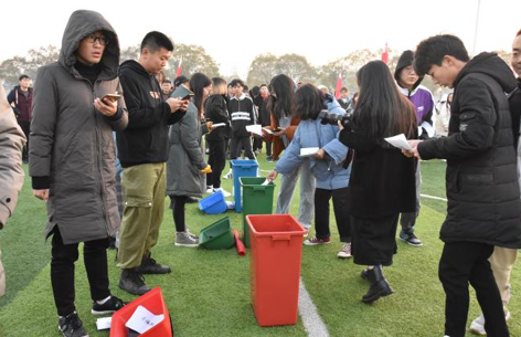 服装报讯(艺术设计学院)为了不断提高大学生对垃圾分类回收的认识,让垃圾分类理念深入人心,引导大家正确投放垃圾,促进校园切实有效做好垃圾分类工作,12月11日,艺术设计学院在操场开展了以“垃圾分类树学风,校园环境新面貌”校园垃圾分类主题活动,艺术设计学院第五期“青年马克思主义者培养工程”骨干培训班全体学员参与。